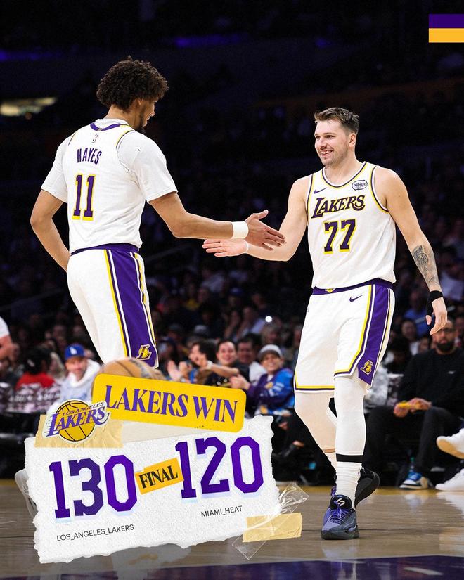 里夫斯中距離得分,拉拉維亞空接暴扣,邁阿密再次請(qǐng)求暫停。米切爾2罰不中,東契奇、拉拉維亞相繼沖擊籃下得手,湖人打出了8比0的攻勢(shì)穩(wěn)住局面。熱火連續(xù)遠(yuǎn)投不中,拉松拉桿上籃得分,阿德巴約拋投打進(jìn),邁阿密繼續(xù)追分。里夫斯轟進(jìn)三分球,哈克斯拋投取分,東契奇強(qiáng)攻內(nèi)線打成了2+1,湖人領(lǐng)先12分得以鎖定勝局。拉松暴扣,東契奇2罰全中還以顏色。哈克斯打成了2+0,比賽時(shí)間走完。最終,湖人以130比120掀翻熱火,得以實(shí)現(xiàn)3連勝。